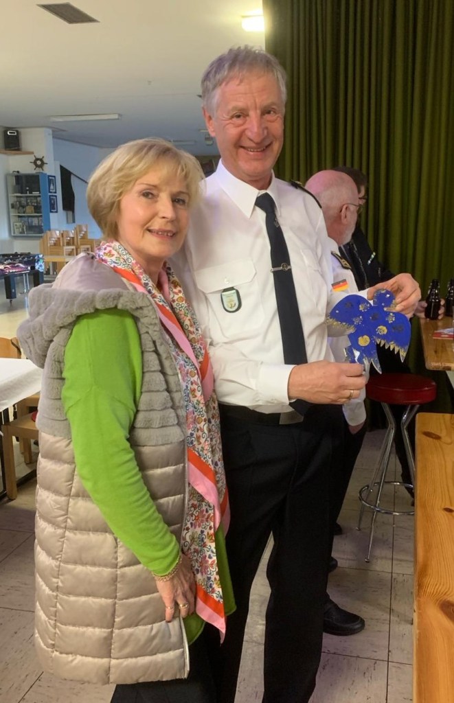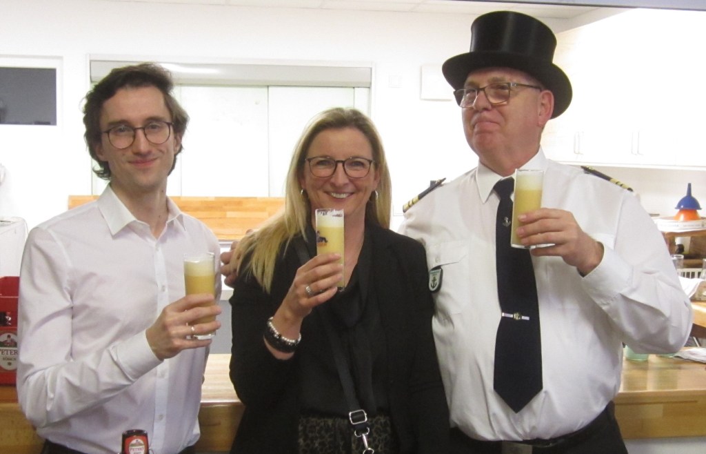 Ja und da ist noch ein Ritual, dass unser ehemaliges Mitglied, Werner Zimmermann, eingeführt hat. Das „Eierbier “ beim Marinezug. Sowohl König als auch der Adjutant hatten es 2017 schon einmal gekostet. Auch die Königin wollte eins haben. Wie man sieht hat es ihnen geschmeckt.