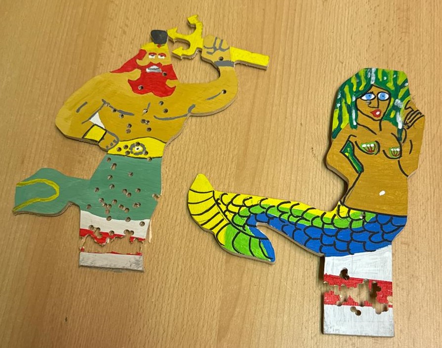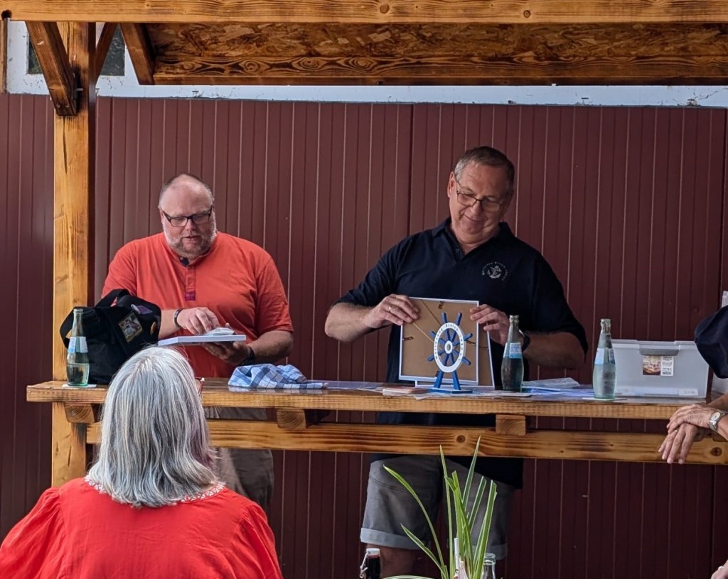 Jedes Jahr schießen wir die Marinepokale aus. In den letzten Jahren konnten die Frauen immer mit der geringeren Schusszahl ihren Holzvogel erlegen. Das kratzte natürlich am Ego der Männer. Dieses Jahr hatten wir uns vorgenommen, „denen zeigen wir es !“. Als Zielobjekte gab es einen Neptun für die Frauen und eine Meerjungfrau für die Männer.