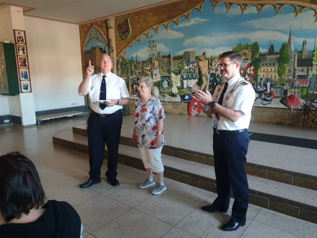 Der Kommandant begrüßte das Königspaar Georg II. und Sonja Westerholz sowie den Adjutanten Holger Eßer. Nach einer kurzen Ansprache überreichte er die Gastgeschenke, die mit sichtlicher Freude entgegengenommen wurden.